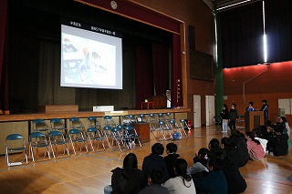 富士川町の「ぐりぐらの会」の代表の宮澤様と事務局の大森様が交代で読み手をしてくださいました。少し難しい内容でしたが、5・6年生は地域にゆかりのある話にじっくりと耳を傾けていました。