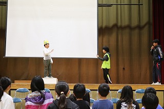 峡南人権擁護委員協議会・人権教室委員会の方たちによる人権教室が行われ、1〜3年生が参加しました。人形・紙芝居・劇を組み合わせて撒かれた人権の「種」を子供たちはしっかりと受け取っていました。子供たちの心の中でしっかりと根を伸ばし、芽を出し、育っていくことを願っています。